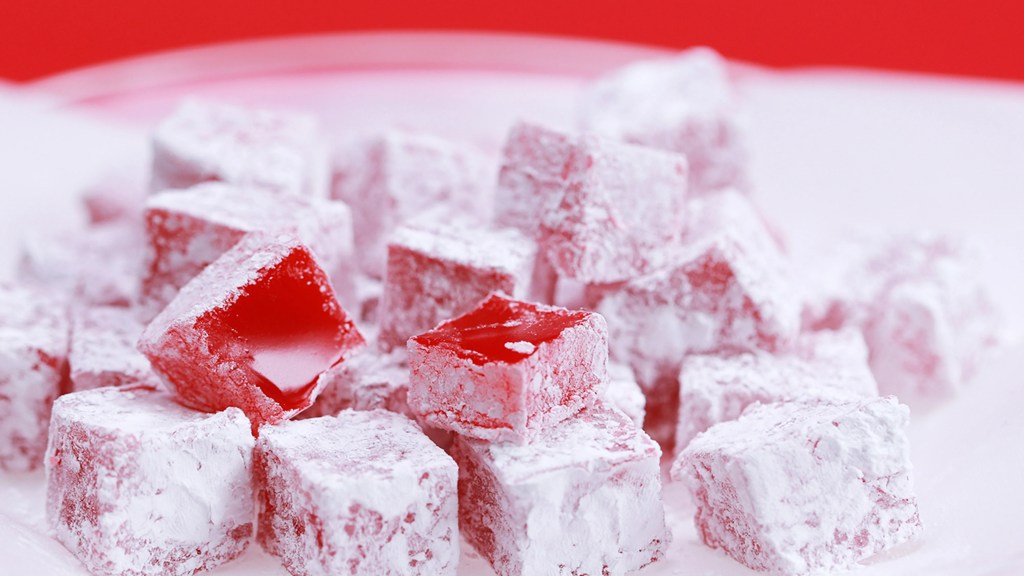 In my opinion, lokum should always be bought at the market, as opposed to buying the commercial packaged kind, as pretty as they look! When purchasing lokum at a market, here are some tips to enhance your experience. Markets often offer a wide range of flavors, including traditional rose & lemon, as well as unique options like mastic or pomegranate. Don’t hesitate to ask for samples! Look for lokum that appears soft & fresh, avoiding those that seem hard or overly dry. Fresh lokum should have a pleasant, chewy texture.
