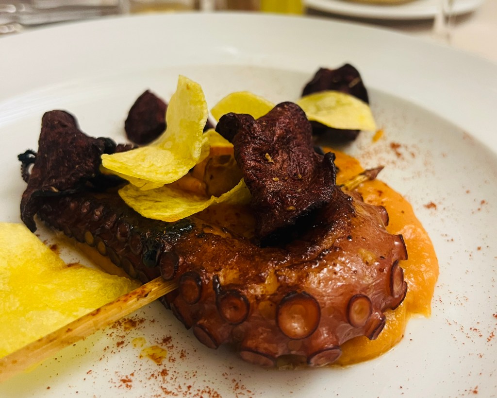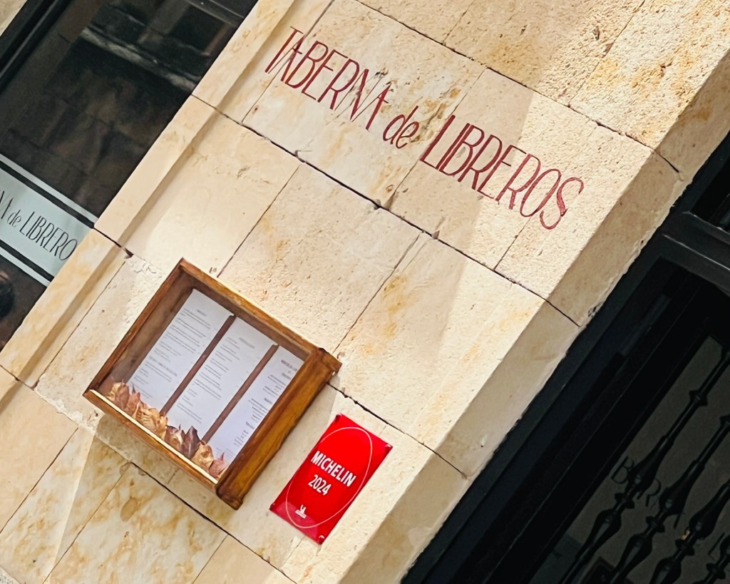 After walking around town for some hours, it was time to indulge on some delicious Spanish delicacies. Salamanca’s cuisine reflects its Castilian roots, offering hearty and traditional dishes that make use of local ingredients. The region is known for its rustic flavors, cured meats, and simple, yet flavorful preparations. Salamanca’s culinary traditions are rich & varied, with an emphasis on quality local ingredients and time-honored recipes that have been passed down through generations. We didn’t have to go far, right on our own bustling Calle Libreros, we found the Michelin renowned Taberna de Libreros, a popular and cozy spot in Salamanca known for its lively atmosphere & traditional Spanish tapas…a favorite among locals and tourists alike.