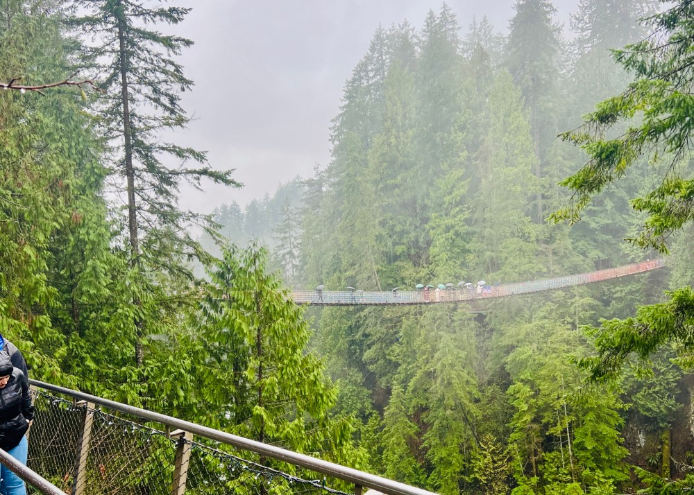 The Capilano Suspension Bridge isn’t just a stunning feat of engineering—it’s also a place steeped in history. The bridge itself was first built in 1889 by a Scottish civil engineer, George Grant Mackay, and has since become a symbol of Vancouver’s deep connection to both its natural surroundings and its indigenous heritage. As we wandered through the park, we encountered traditional totem poles, each carved with intricate symbols that tell the stories of the Coast Salish peoples, who have lived in this region for thousands of years. The rain seemed to bring everything to life, with the mist swirling around ancient cedar trees and the sound of the river rushing beneath us.