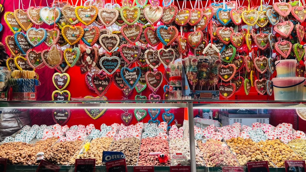 And then there are the sweets…everywhere you turn! Candied apples gleam under the lights, glossy & jewel-like. Lebkuchen hearts, decorated with colorful icing & playful messages, hang from stall roofs, half decoration, half treat. The scent of gebrannte Mandeln (toasted almonds) drifts through the air, warm & caramelized, instantly recognizable & impossible to resist. Add rich, melt-in-your-mouth fudge, and suddenly every corner offers a new temptation. At the Weihnachtsmarkt, sweets aren’t just dessert, they’re part of the adventure! The reason you keep wandering just a little longer.