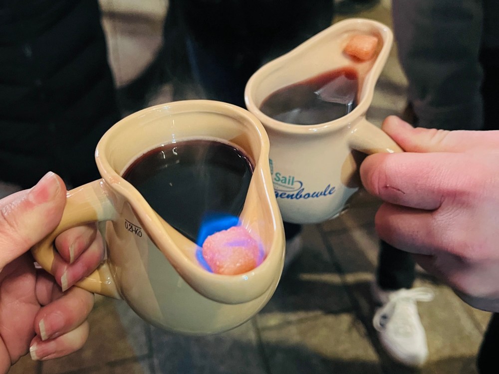 Fun fact: Feuerzangenbowle is almost always stronger than it tastes. Between the rum & the sweet spices, it’s famously deceptive, which explains why Weihnachtsmarkt evenings can get very joyful, very quickly. Watching the blue flames dance above the pot is half the experience, & it’s often served as a centerpiece drink, meant to be shared slowly with friends. Like everything at the Weihnachtsmarkt, Feuerzangenbowle isn’t just about drinking, it’s about gathering, warming up, & leaning into winter with a little fire and a lot of cheer.